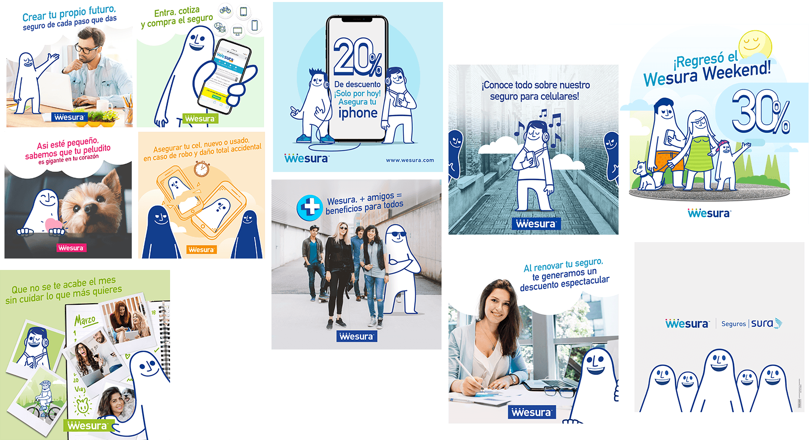 En 2019, SURA lanzó Wesura, una plataforma digital de seguros orientada a nuevos modelos de consumo. Art19 Studio estuvo a cargo del desarrollo y ejecución de todas las campañas publicitarias, acompañando el posicionamiento, la comunicación y la visibilidad de la marca en su etapa de lanzamiento y crecimiento con al rededor de 150 piezas publicitarias para redes sociales y pautas digitales.